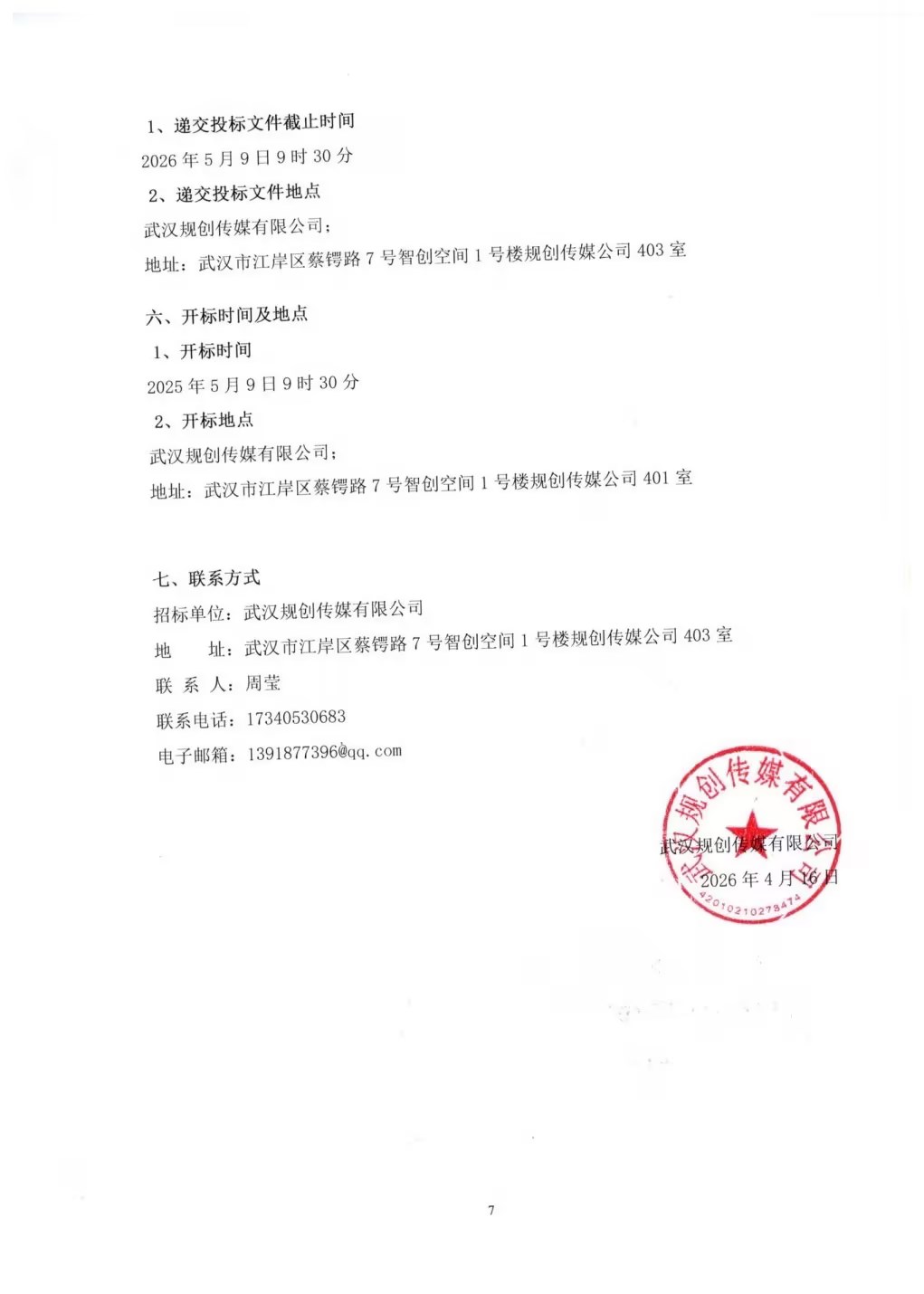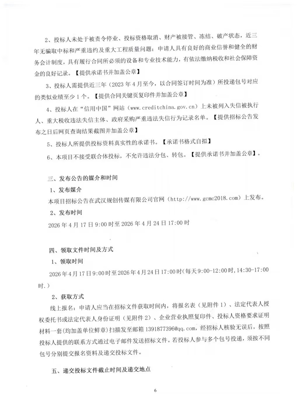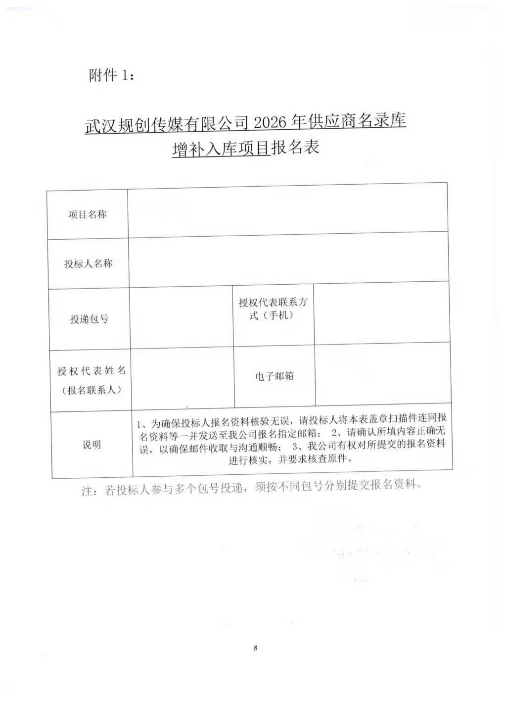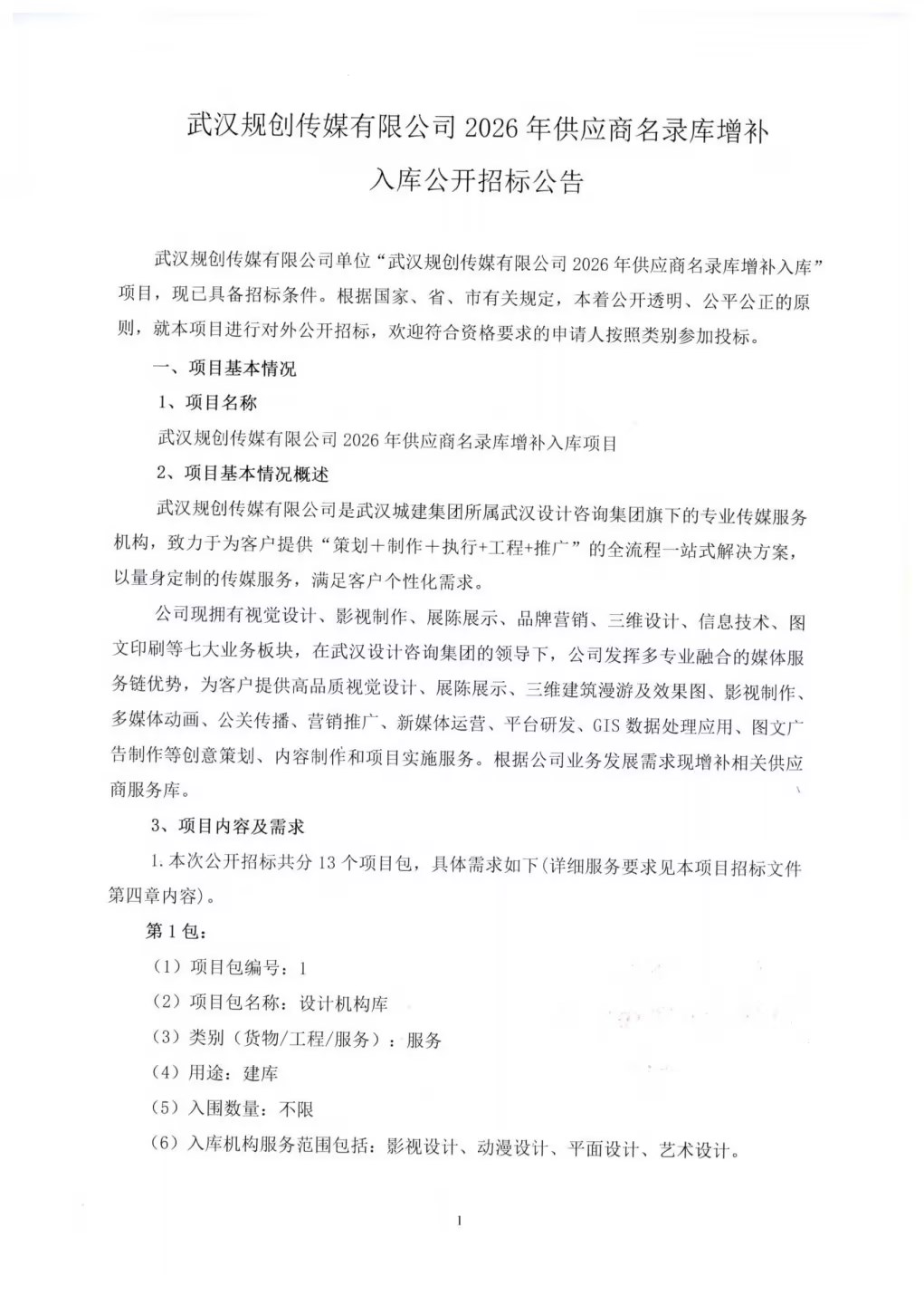 武汉规创传媒有限公司2026年供应商名录库增补入库公开招标公告
