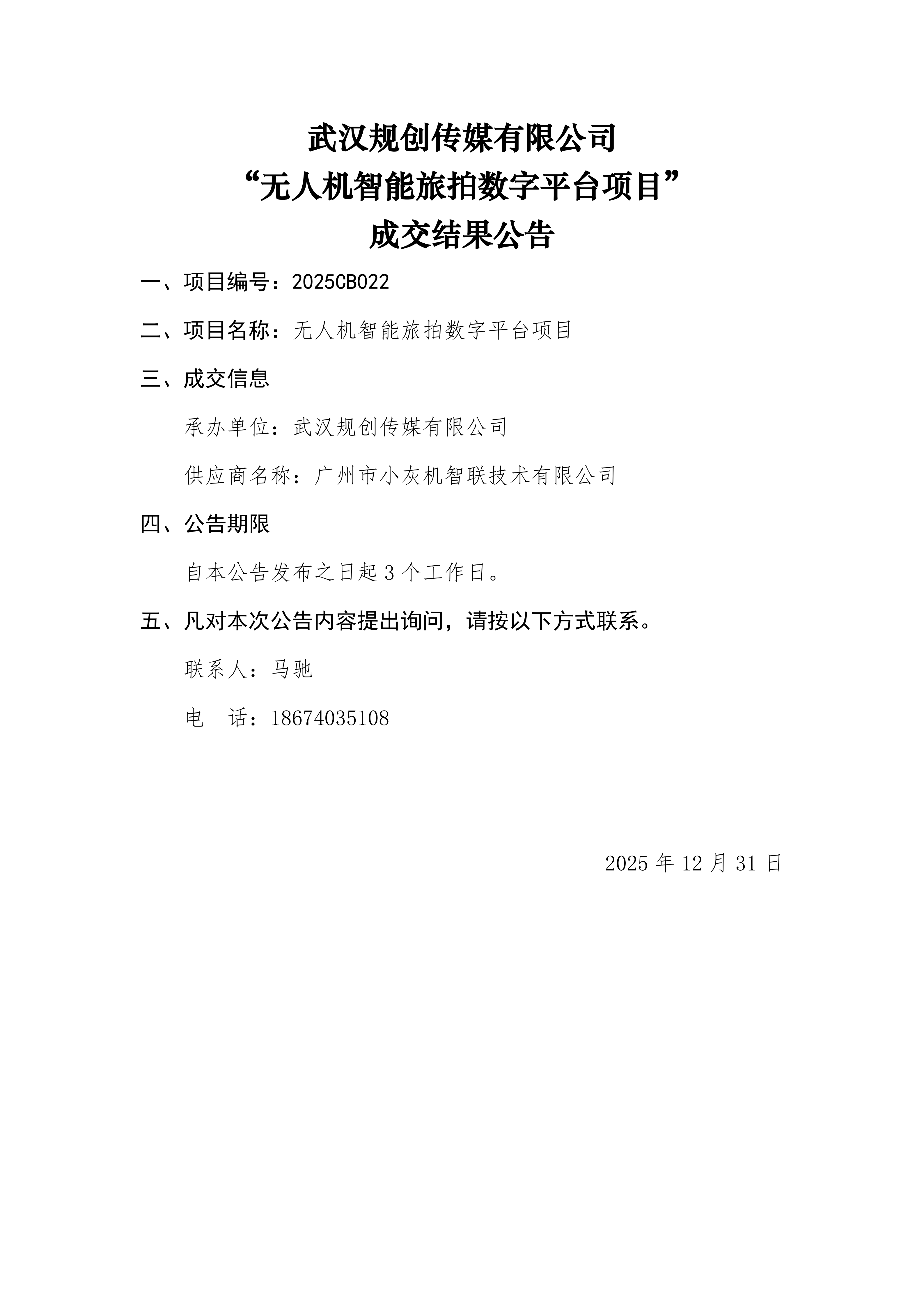 武汉规创传媒有限公司无人机智能旅拍数字平台项目公开竞选公告